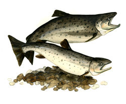 Faktaillustration för Blekinge länsstyrelse. Bilder för affischer på Blekinge Naturum. Öringens- och paddans livscykel.
